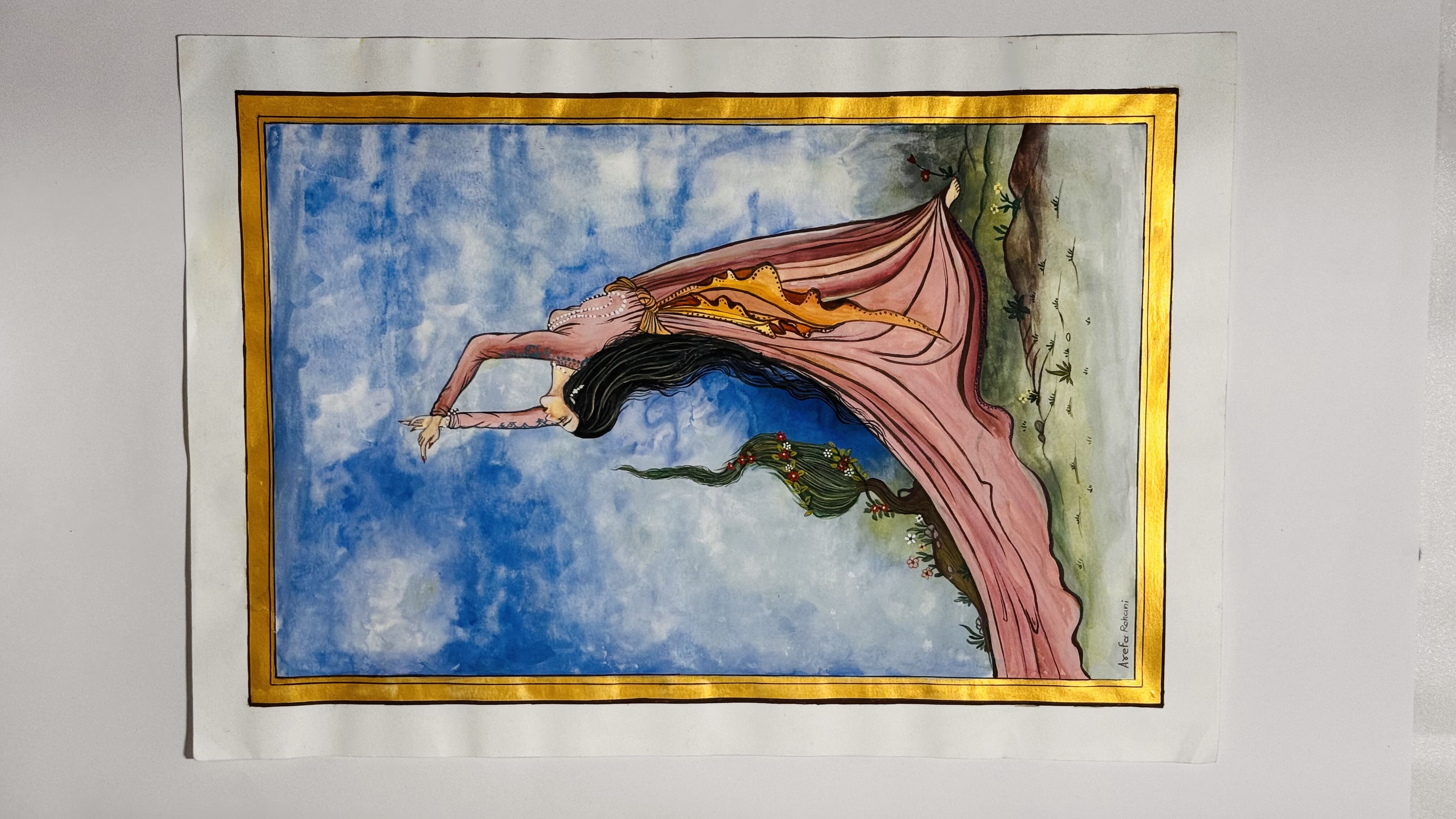 This miniature depicts a woman in a graceful pose, reaching skyward with silent devotion. Her flowing gown and extended arms reflect longing, surrender, and spiritual ascent beyond words.