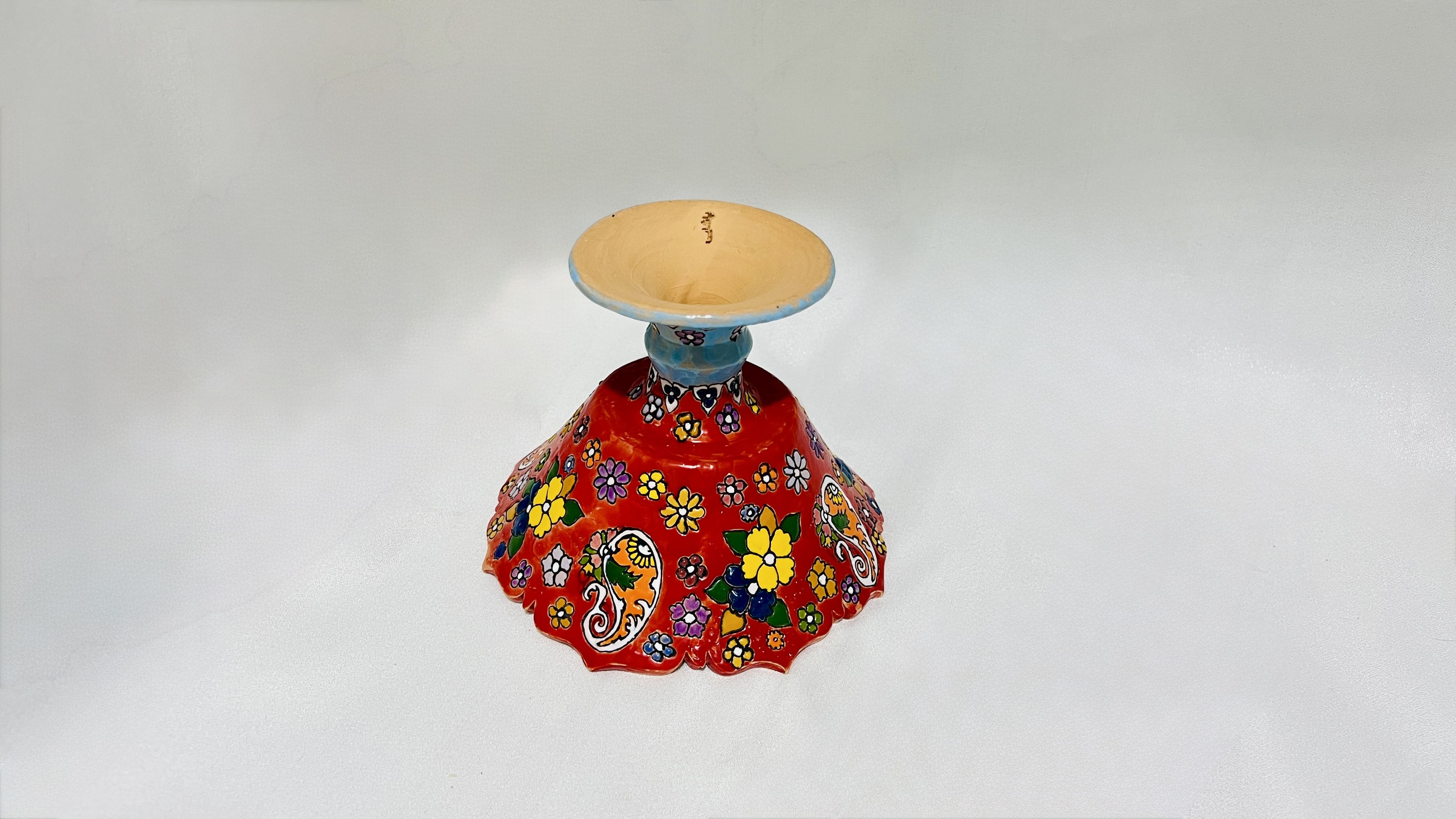 This hand-painted Afghan fruit bowl is made of clay and decorated with vibrant mina-style patterns. Both functional and artistic, it brings Afghan tradition to your home with elegance.