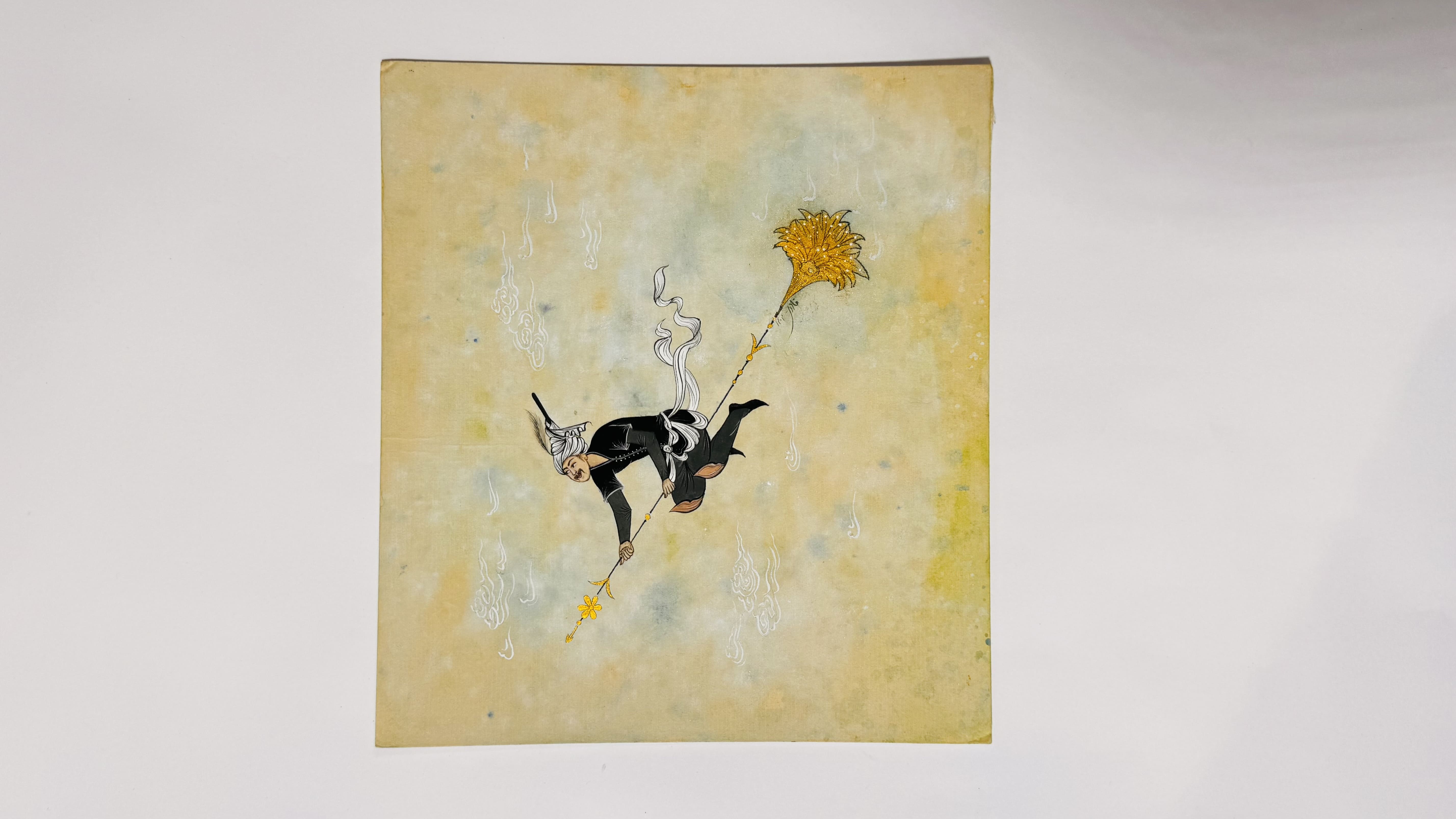 A mythical figure ascends to the sky, holding a magic staff. This miniature symbolizes freedom from earthly limits, inner strength, and the eternal human quest for the unknown.