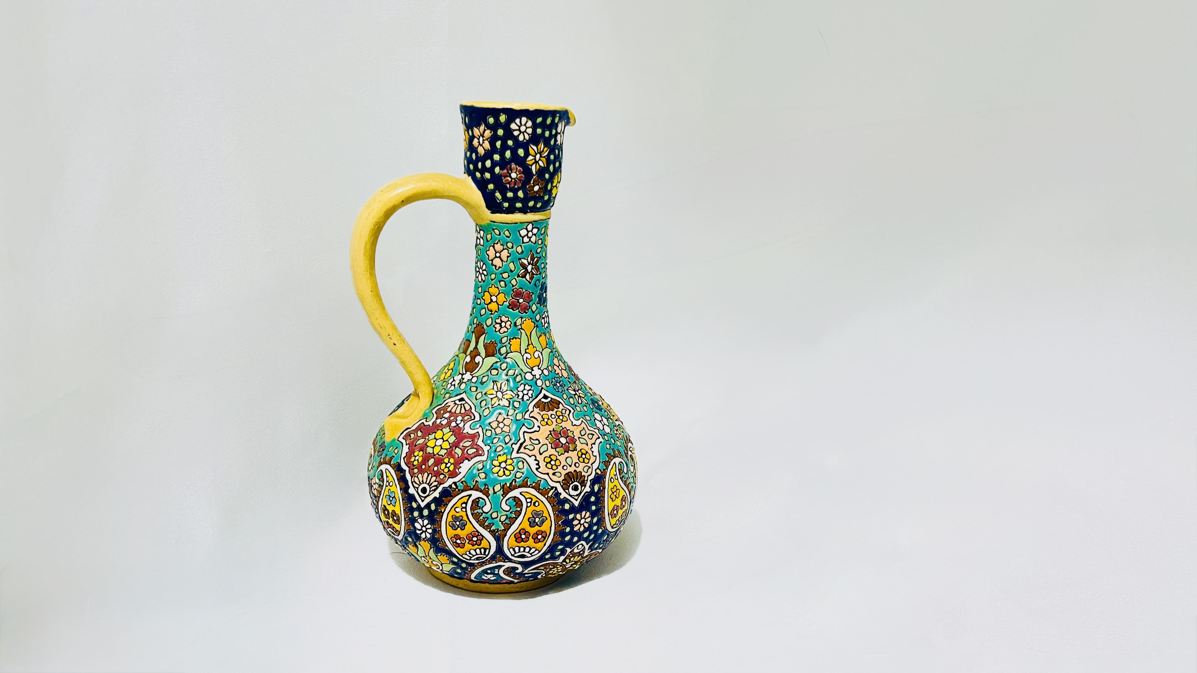 This handmade Afghan rosewater set is crafted from clay and beautifully painted with traditional mina-inspired designs. A charming cultural piece, ideal for rituals, decor, or gifting.