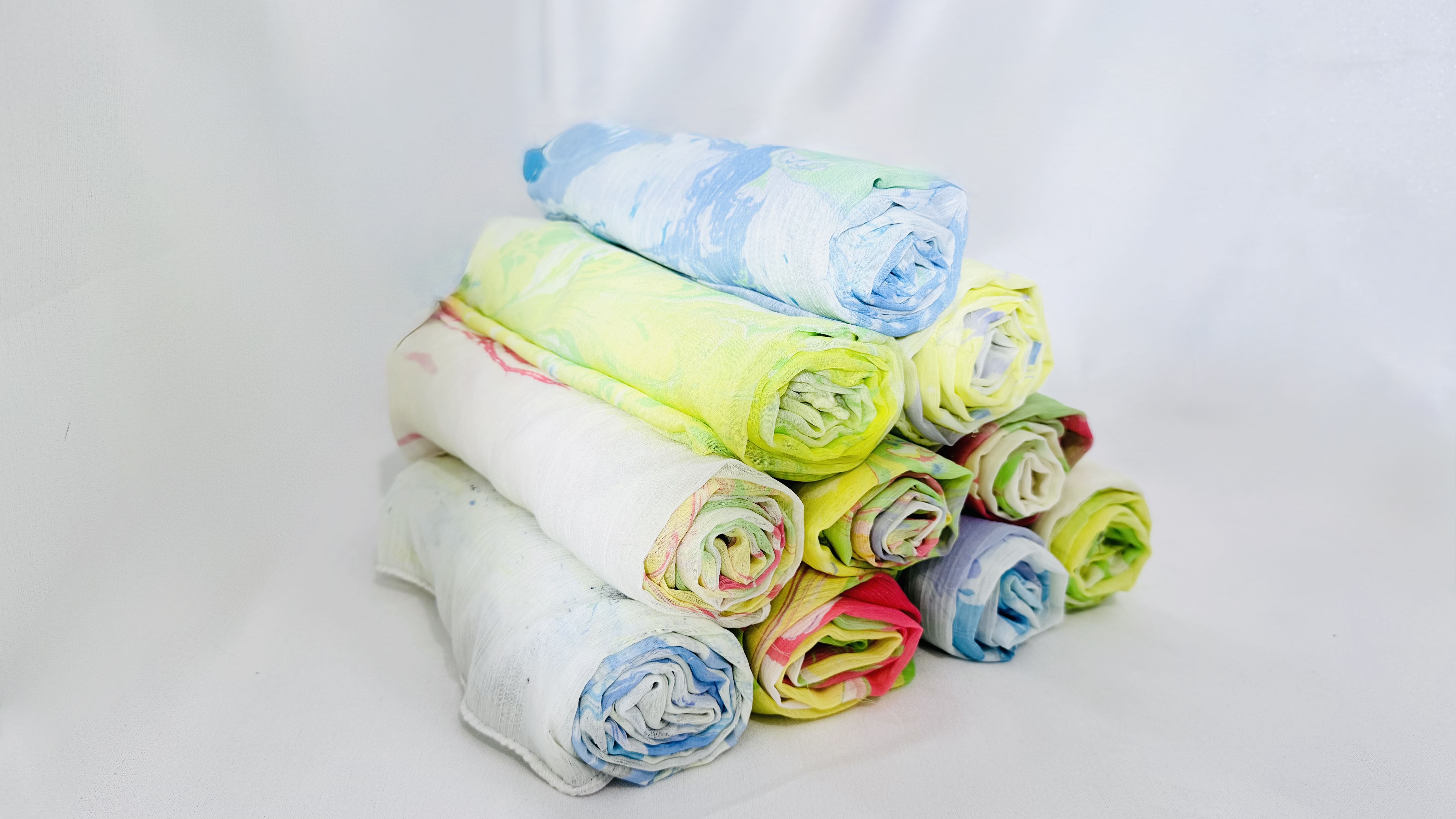 Every scarf is a unique piece of art, hand-dyed with marble patterns on soft fabric. Perfect for everyday elegance or a thoughtful gift. One-of-a-kind beauty in every fold.