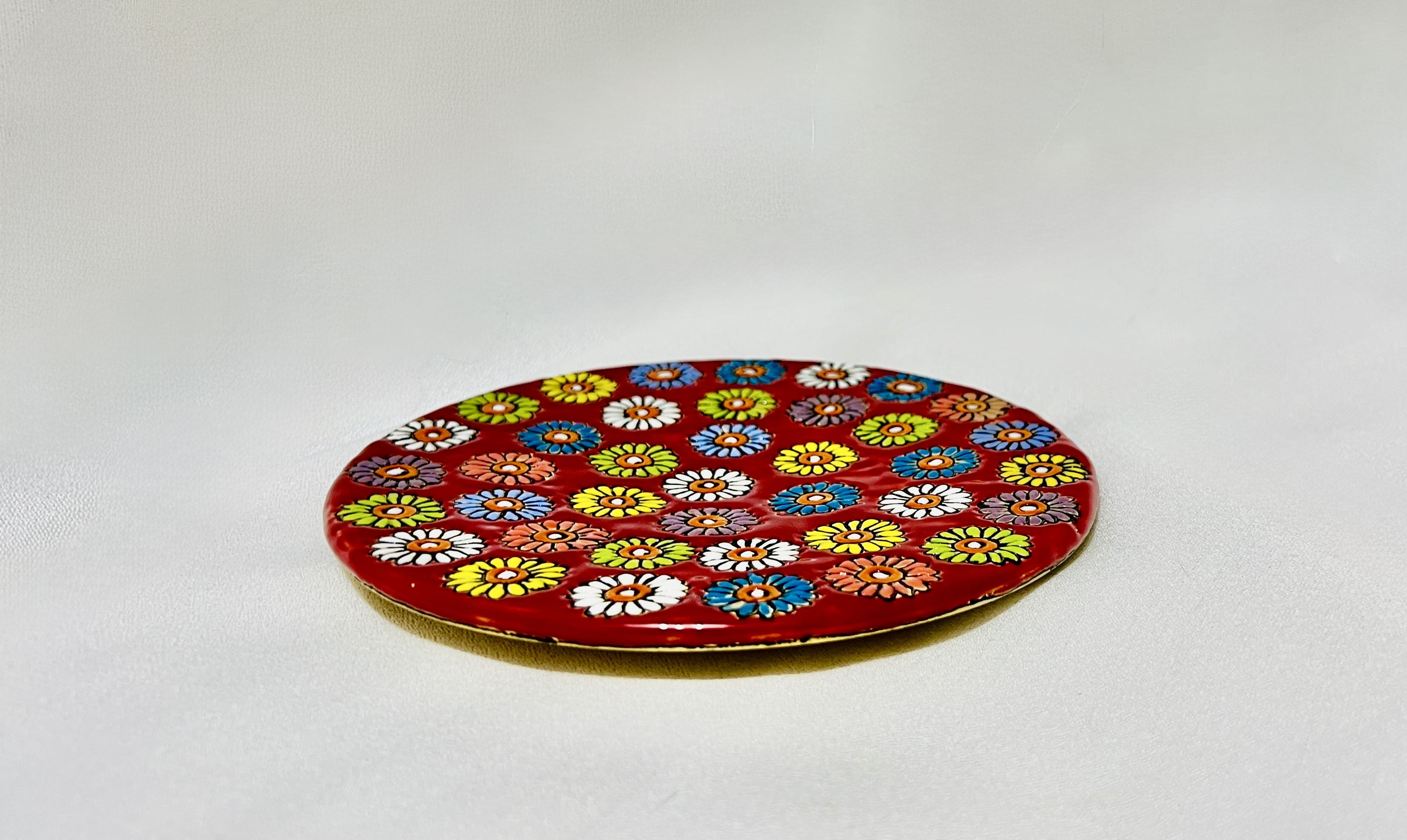 This hand-painted Afghan clay bowl features intricate mina-inspired patterns and rich colors. A versatile piece perfect for serving or as a decorative item rooted in Afghan tradition.