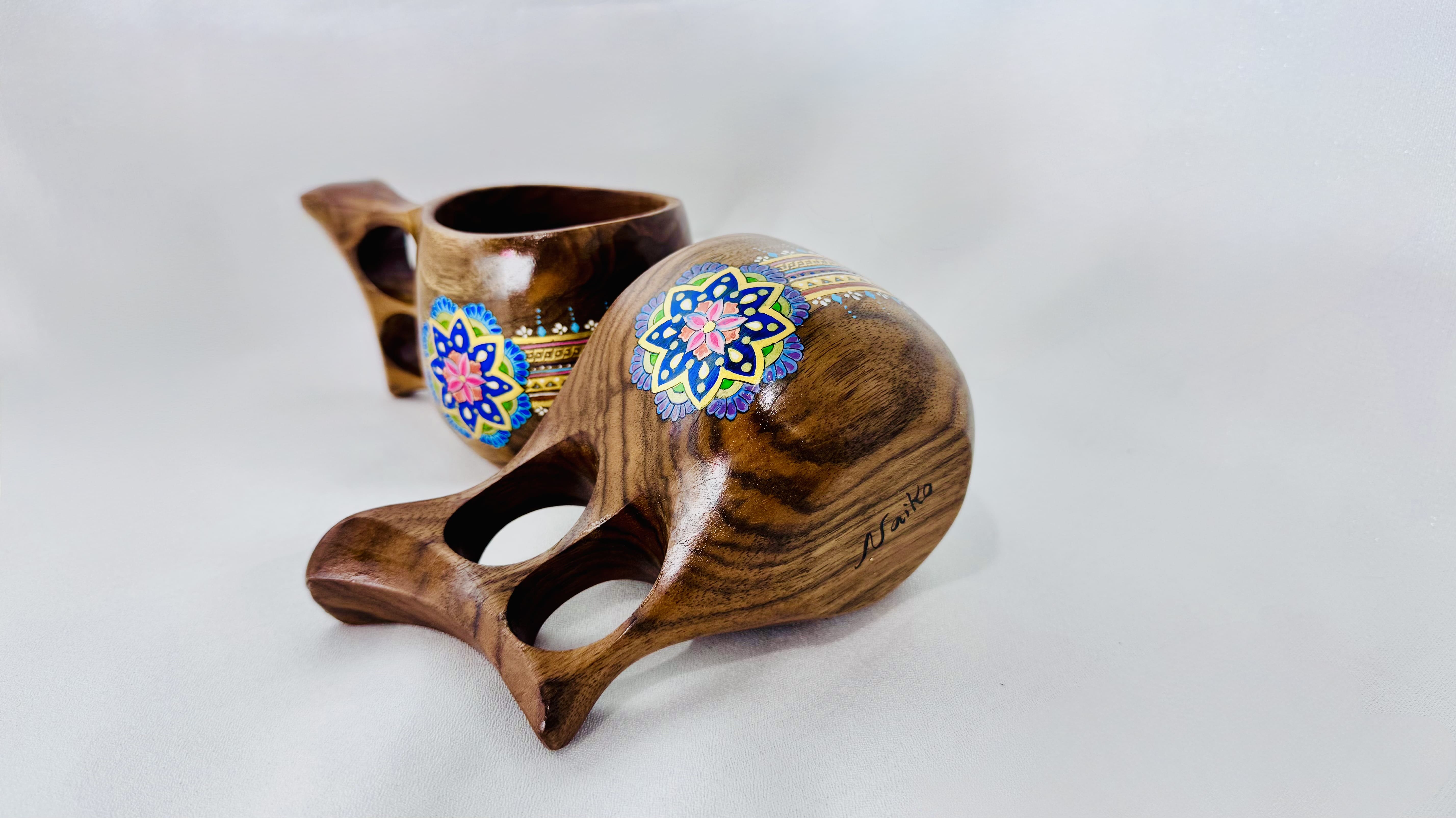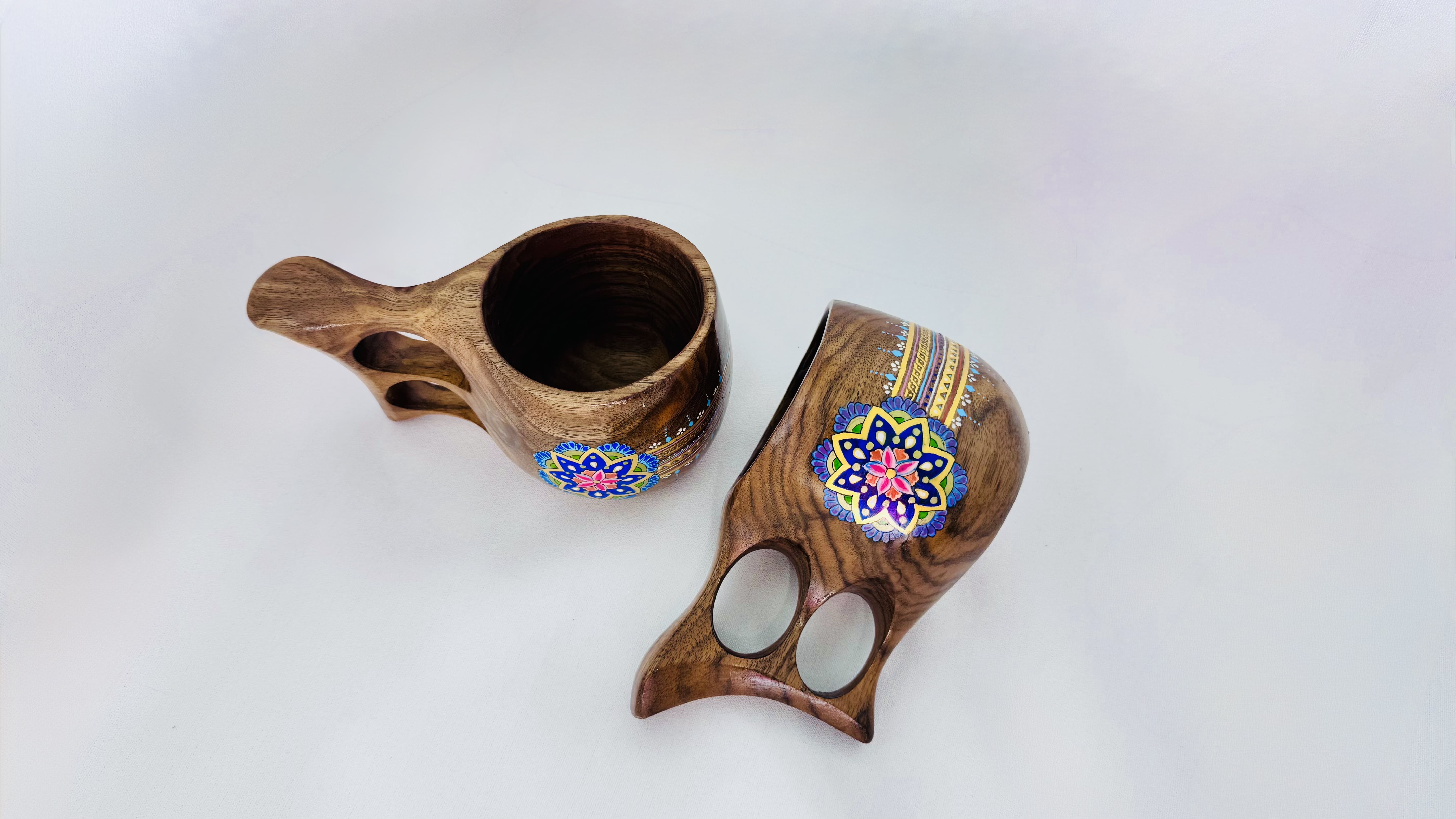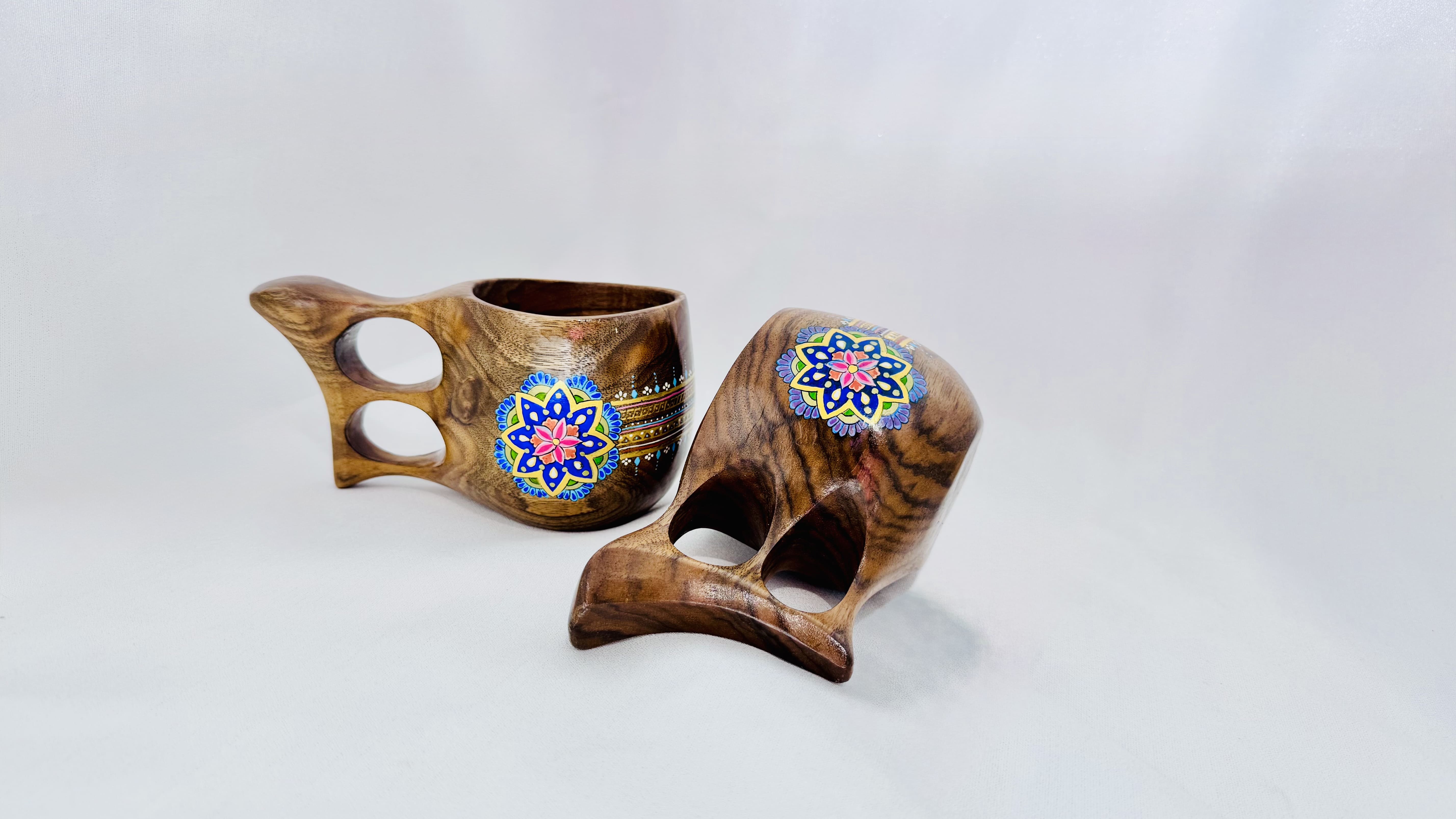 Enjoy your favorite drink in a hand-carved wooden cup, beautifully decorated with traditional patterns. A perfect blend of craftsmanship and culture, made with care and love.