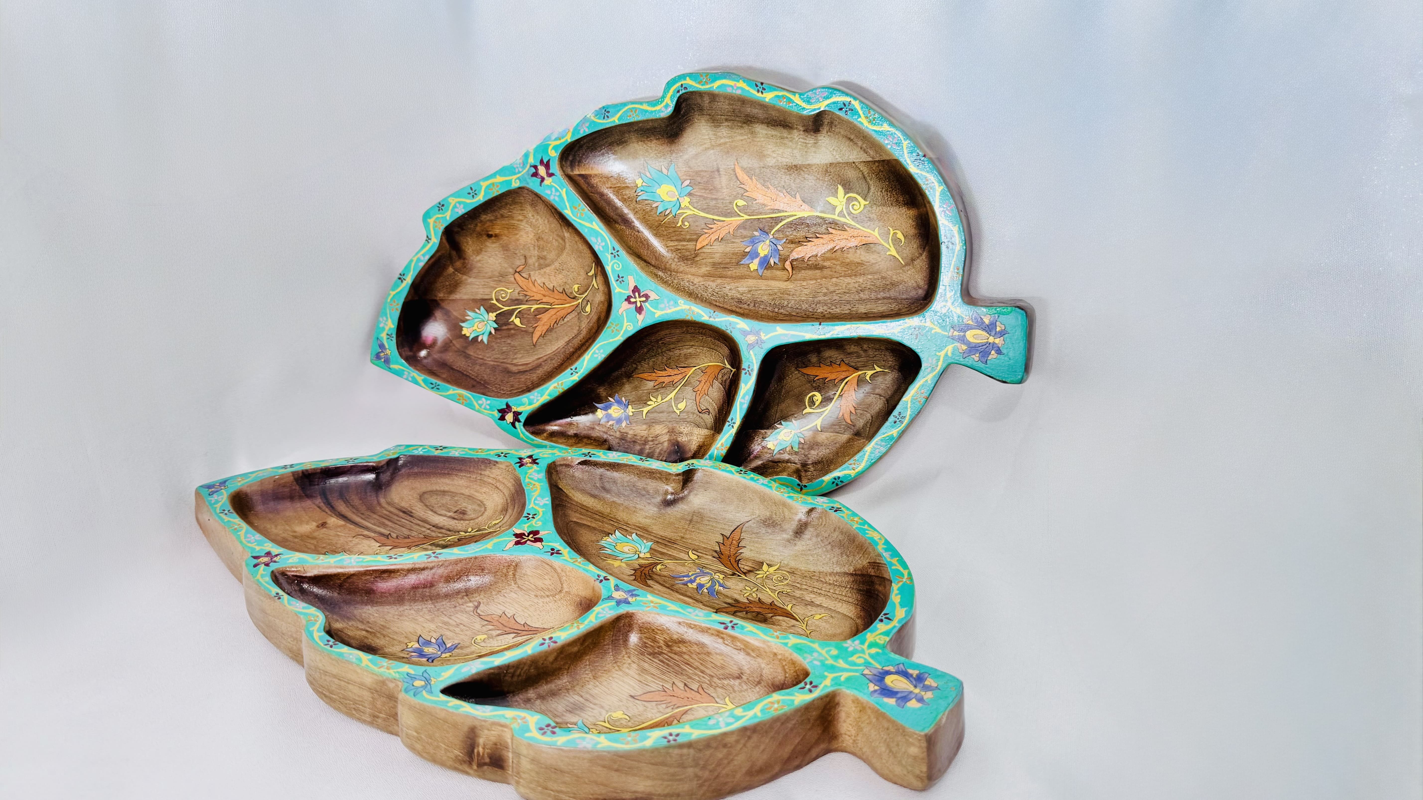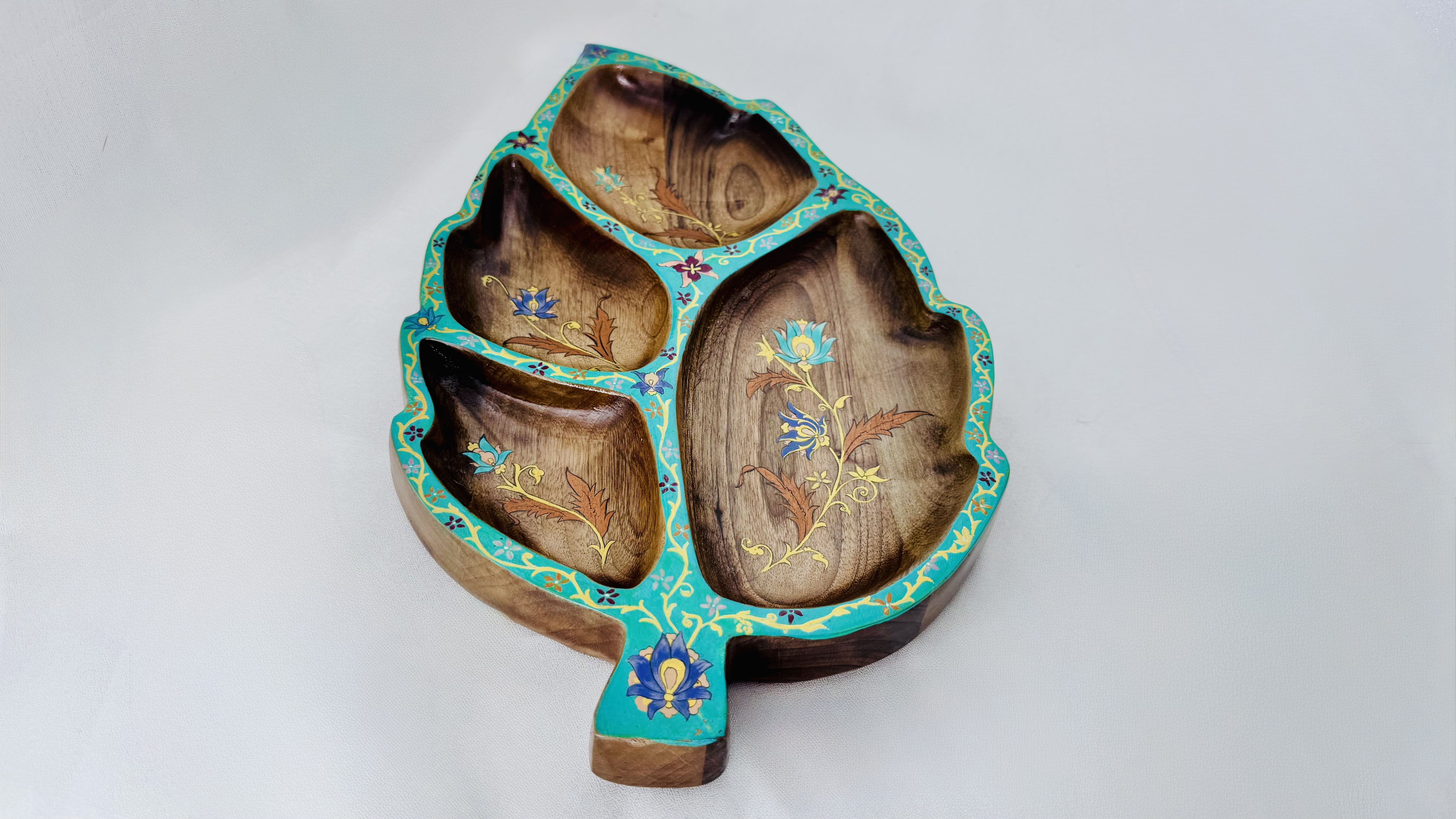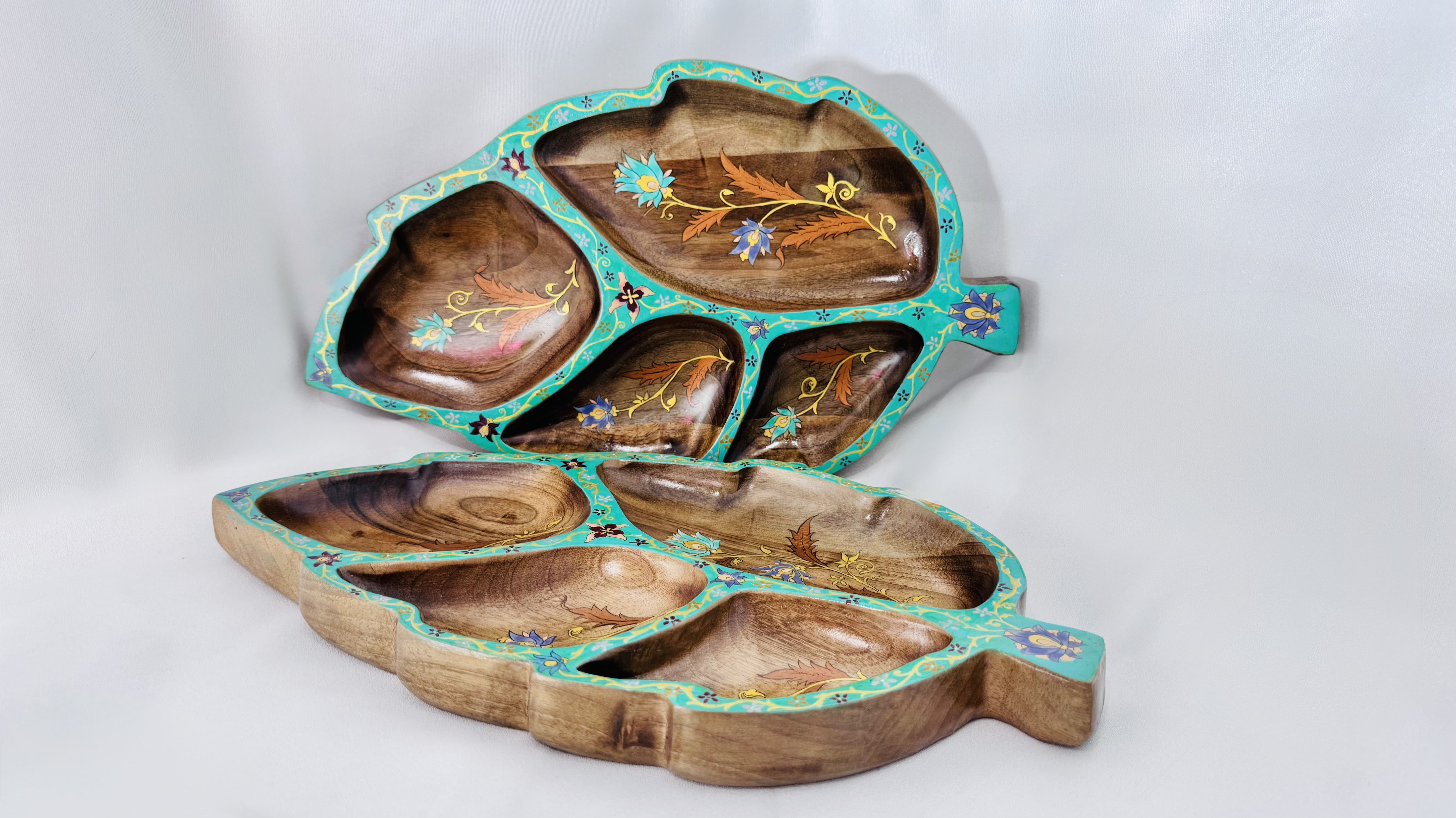 This handmade wooden tray, painted with traditional floral art, brings elegance to your table. Perfect for serving sweets, nuts, or dry fruits. A true blend of craftsmanship and culture.
