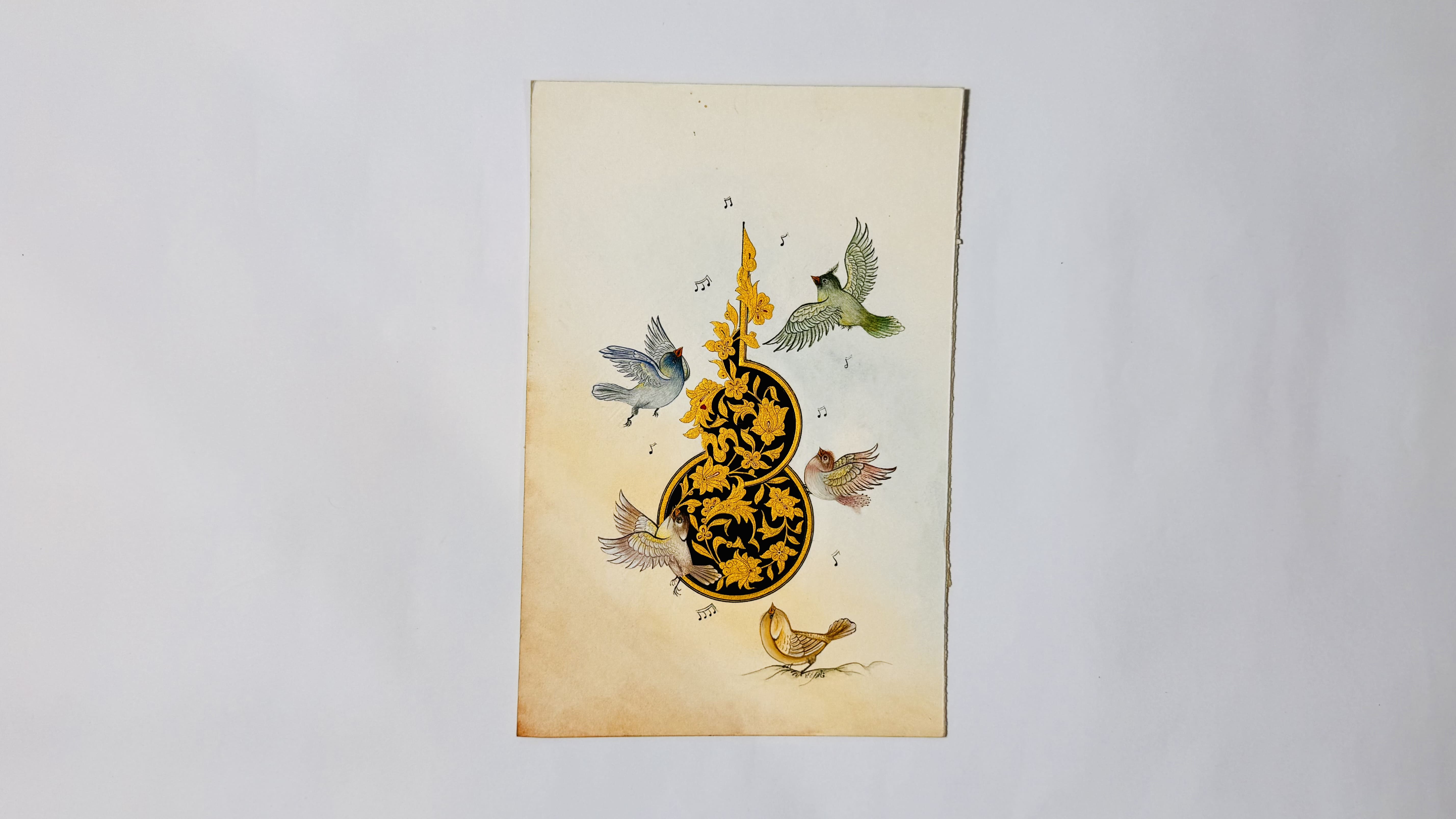 This free-form fusion of illumination and miniature art breaks traditional frames to explore emotion and creativity. Gold vines, floral rhythms, and poetic figures come alive in a world beyond rules.