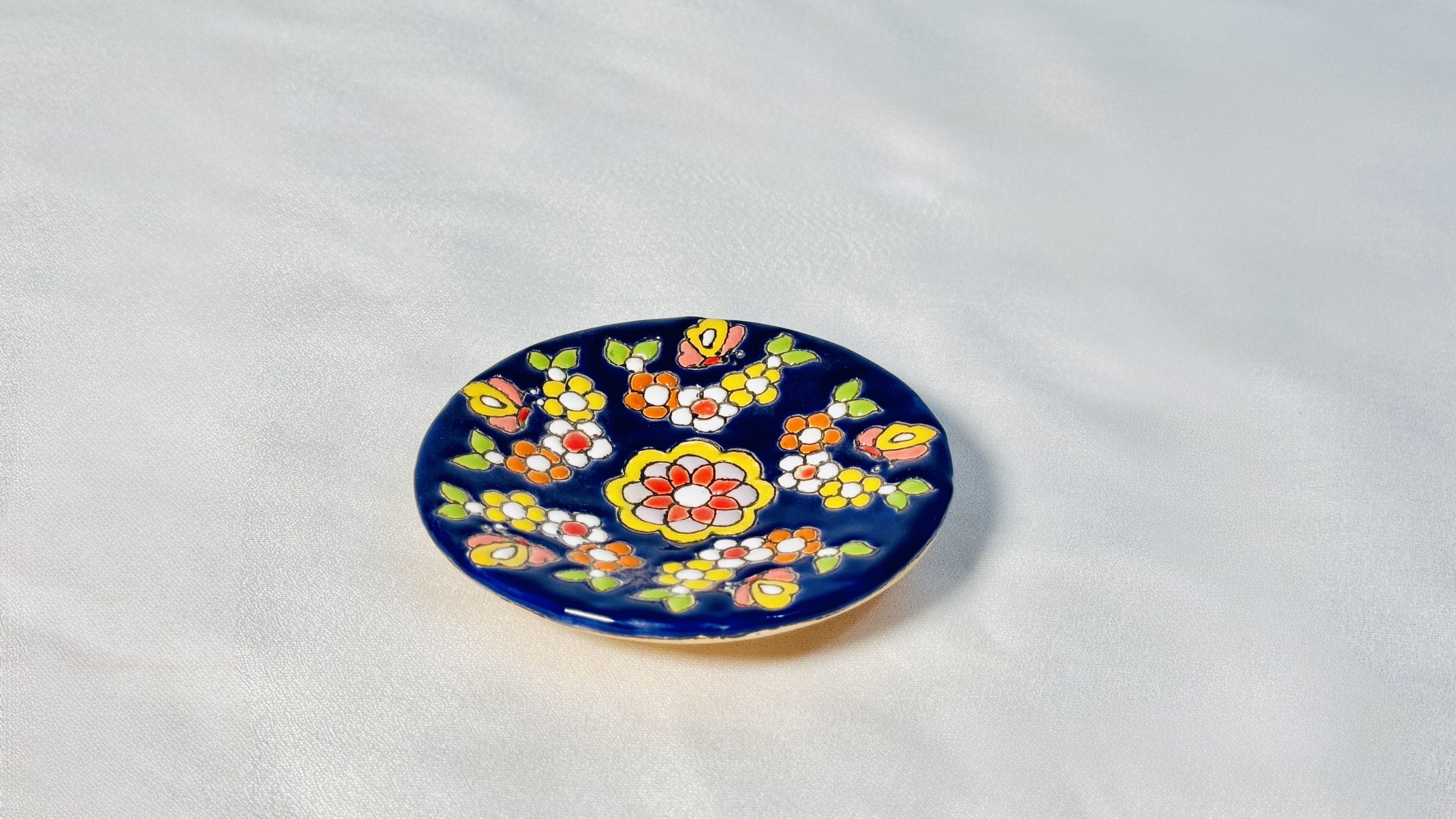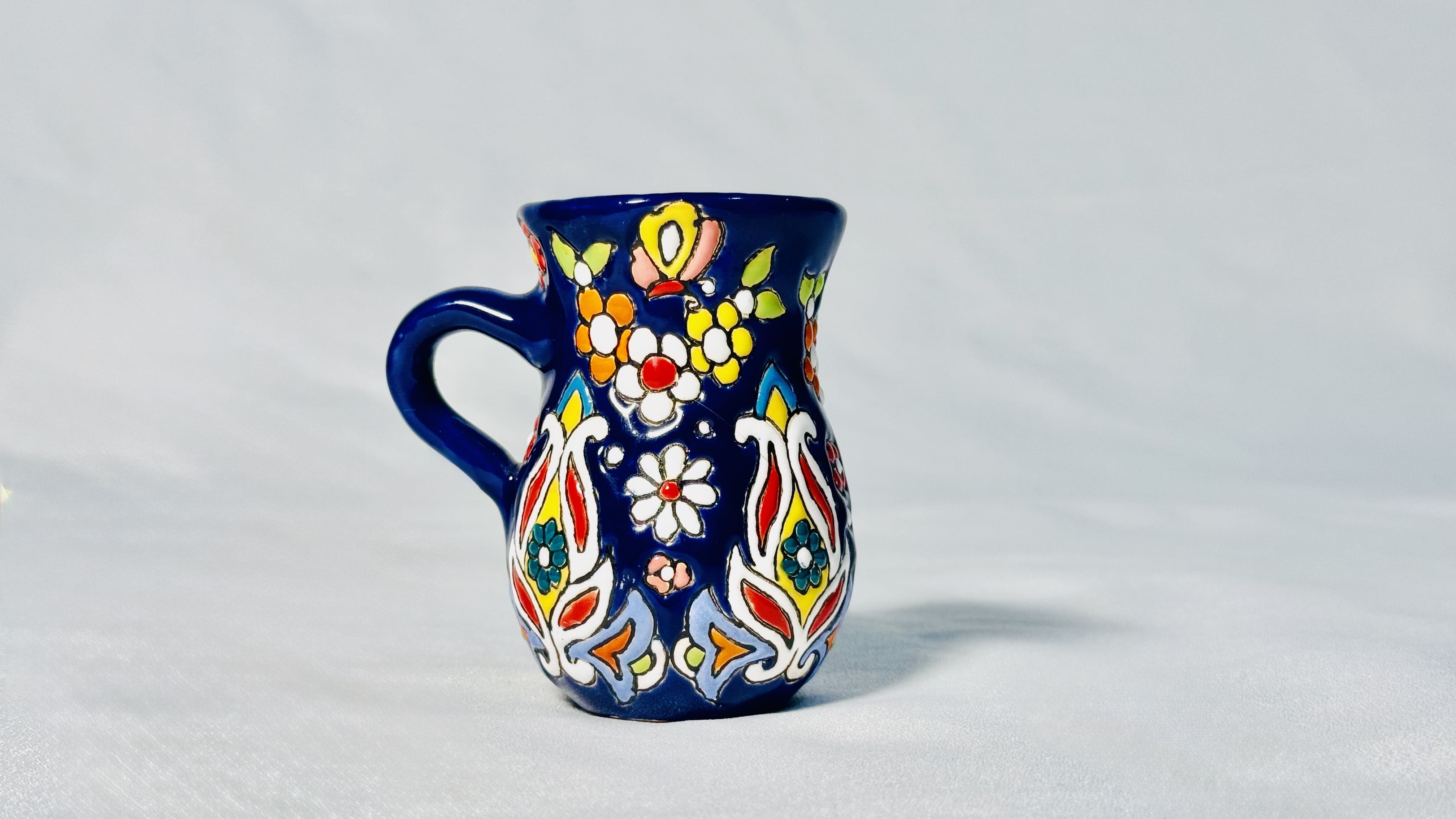 This Afghan clay teapot is hand-shaped and decorated with vibrant mina-style patterns. A perfect blend of function and art, ideal for tea serving or as a unique cultural decor piece.