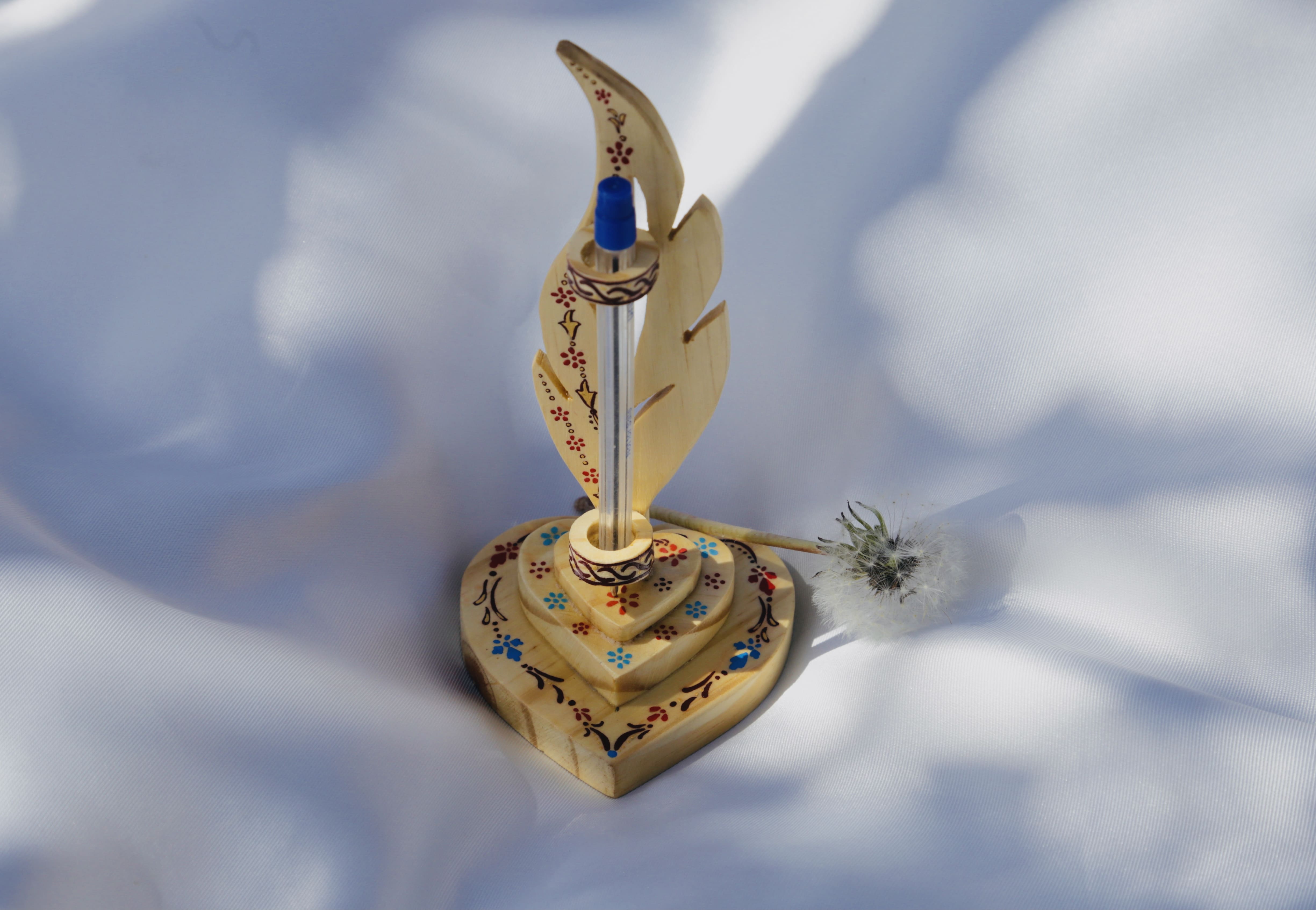 A finely hand-carved wooden pen stand crafted by Afghan artisans. Designed to hold and display your favorite pen with elegance. A perfect blend of art, utility, and traditional craftsmanship.
