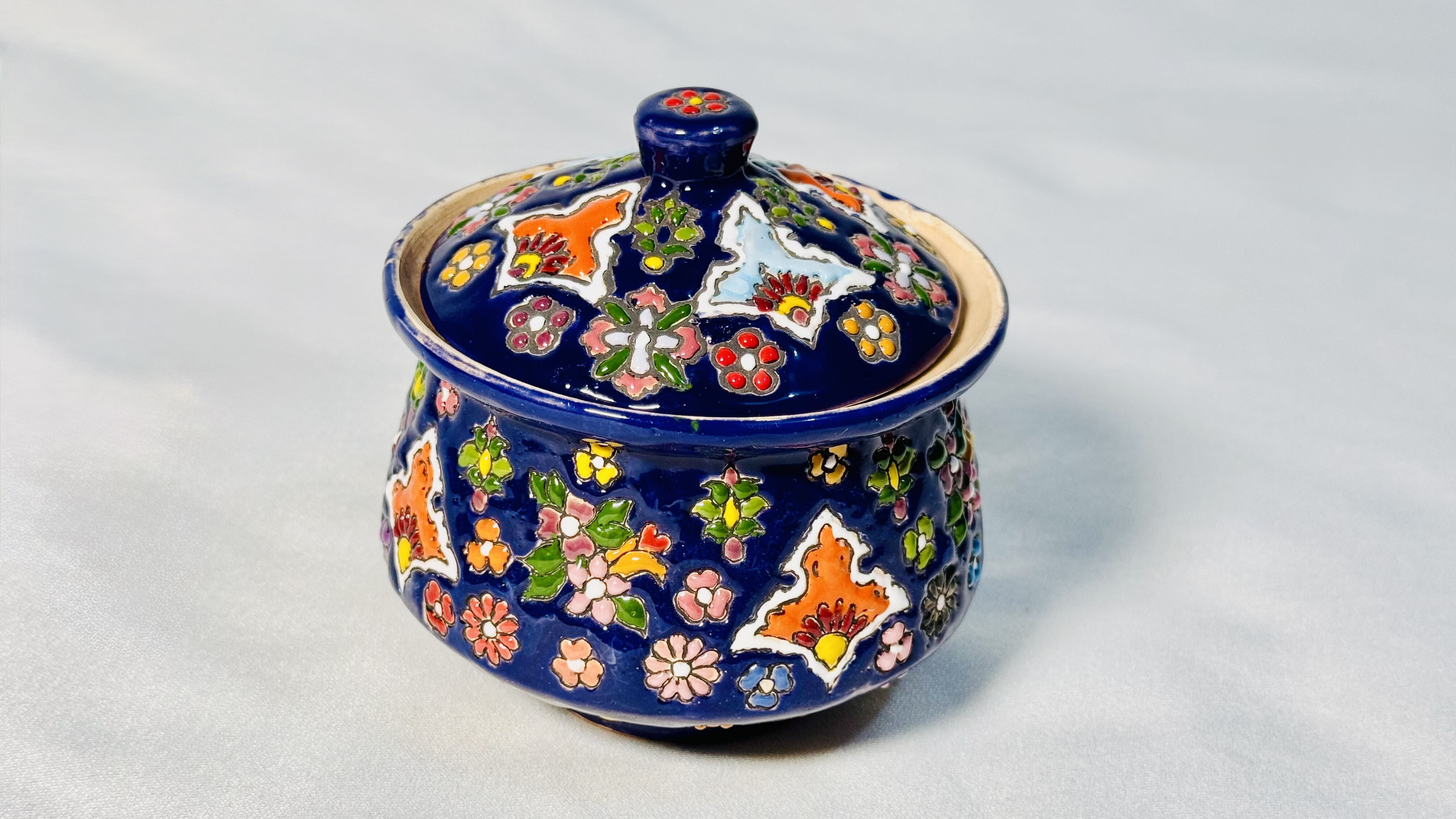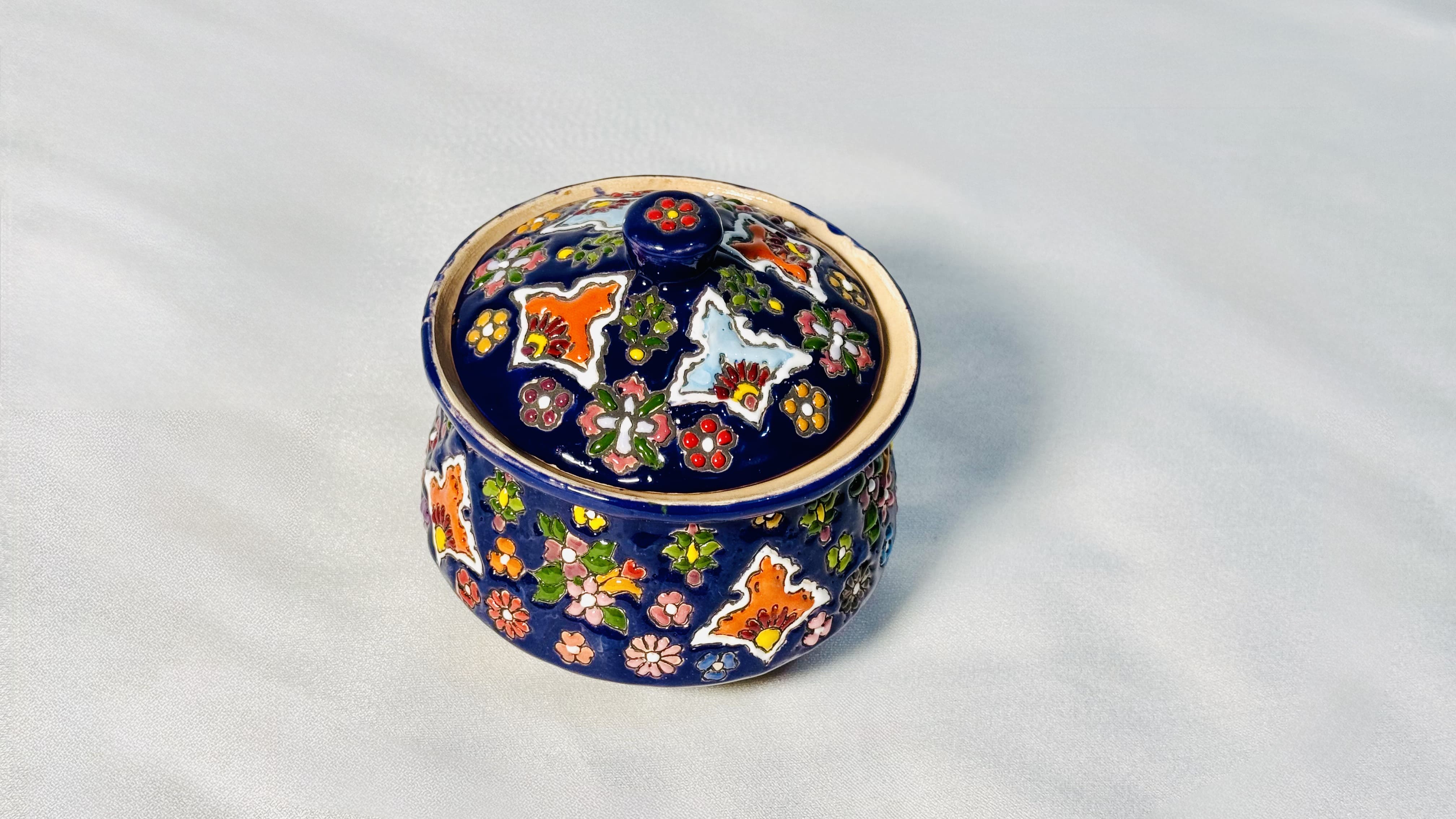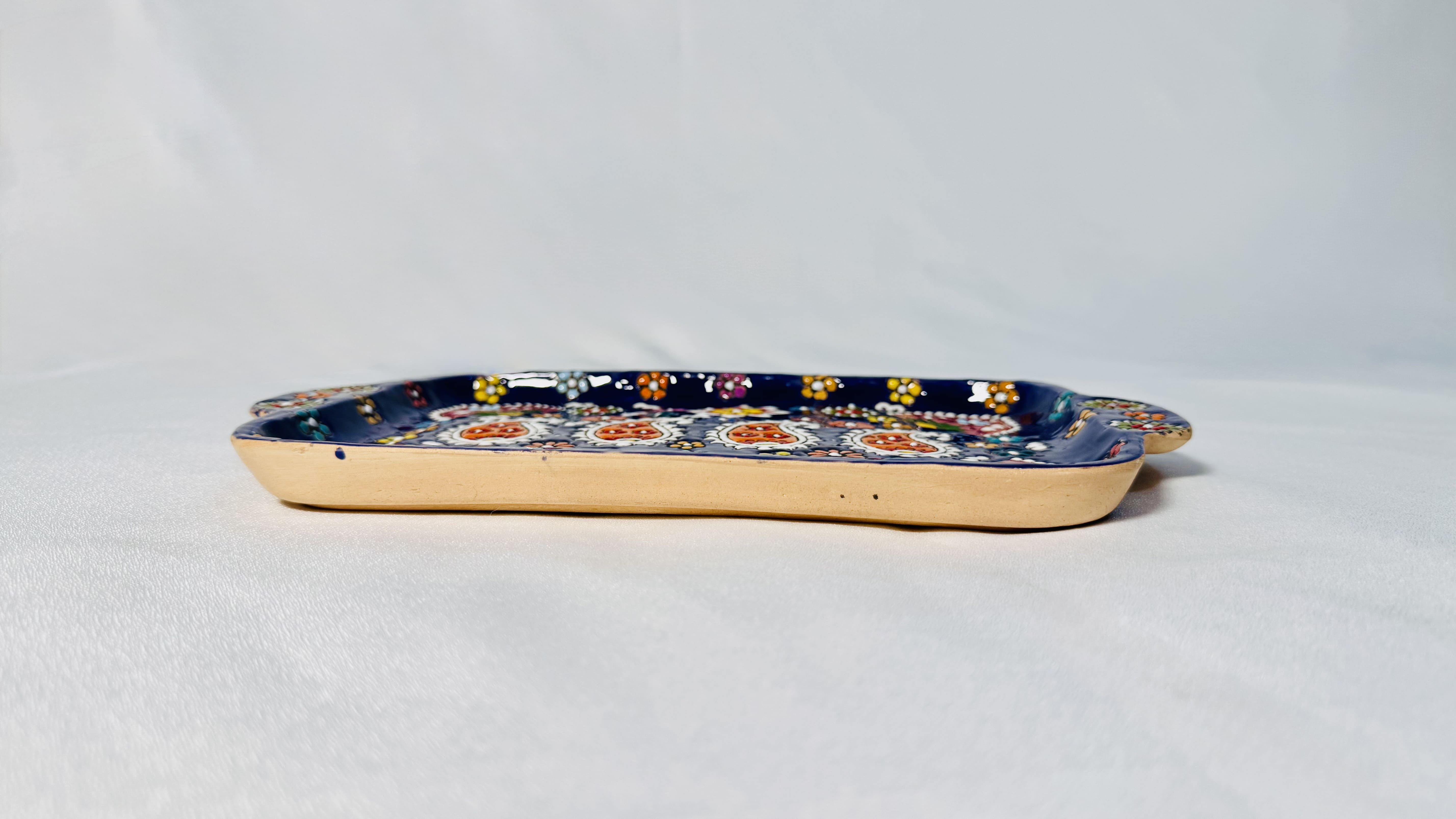 This Afghan pottery tray is hand-painted with vibrant patterns inspired by traditional Afghan art. A perfect piece for serving or decorating, full of culture, charm, and handmade beauty.