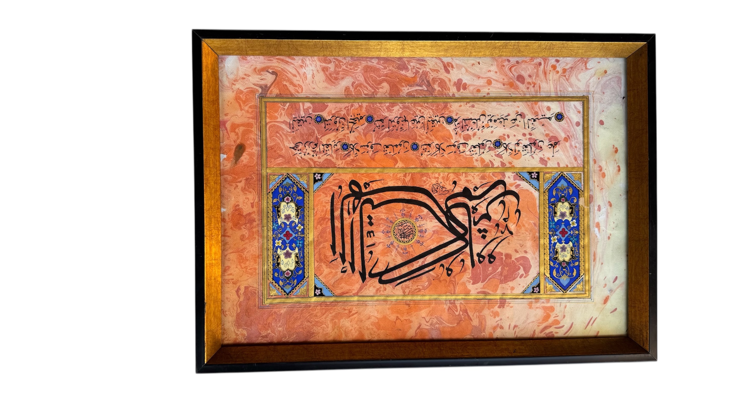 This calligraphy illustrates Surah At-Takathur, a powerful reminder of the fleeting nature of worldly gain. It urges reflection on death, truth, and the soul’s ultimate accountability.