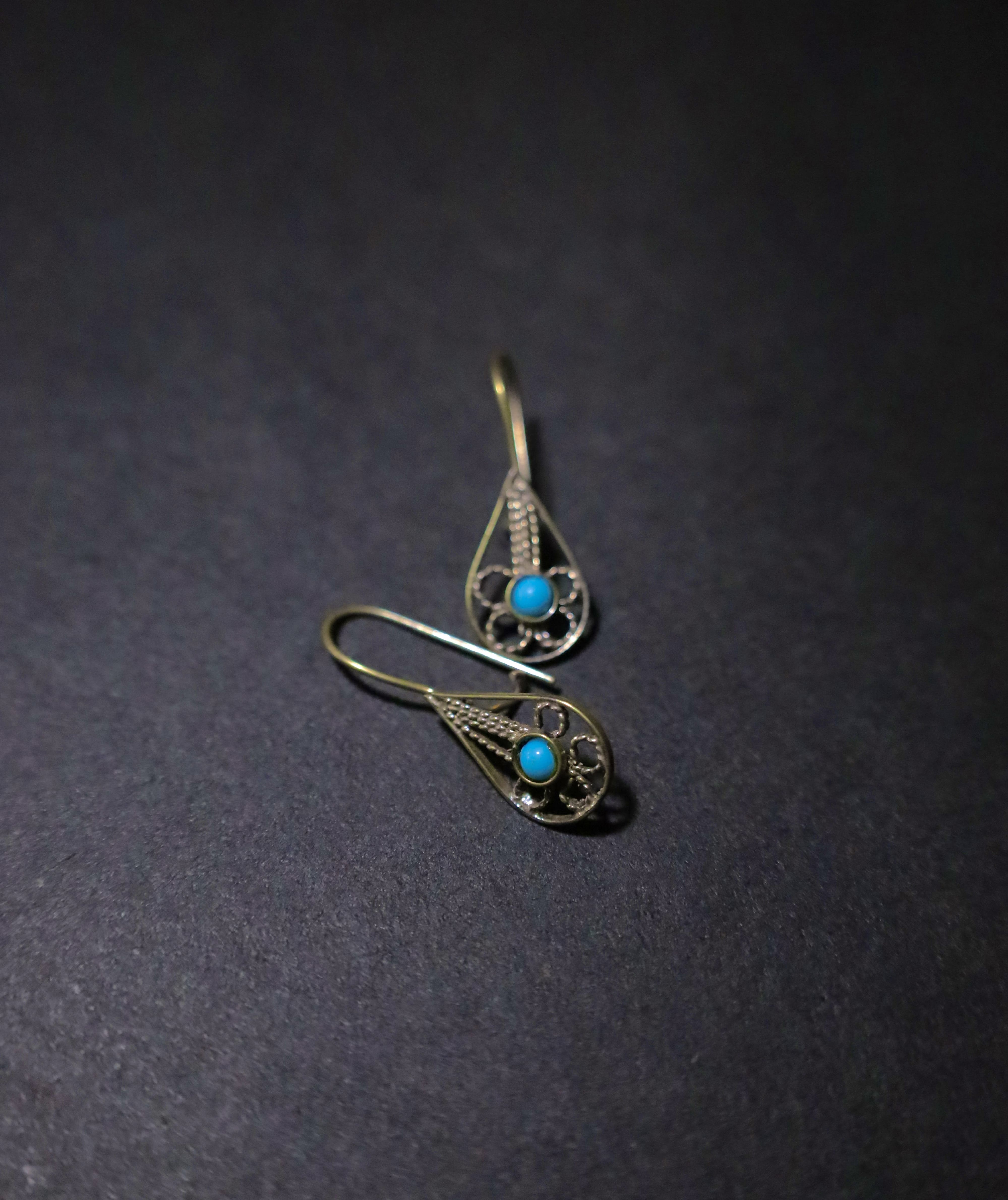 These elegant earrings feature genuine turquoise stones set in high-quality silver. Handmade with care, they offer a timeless blend of natural beauty and classic Afghan artistry.